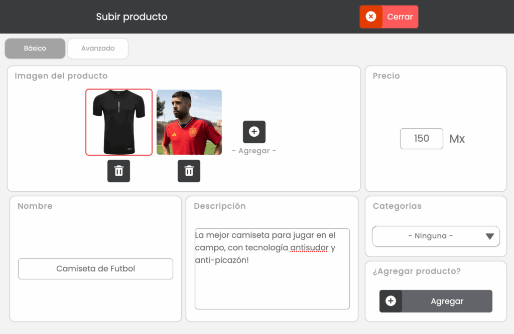 - Pro-Tip: Crea Categorías (ej. «Playeras», «Pantalones», «Accesorios»). Esto hace que tu catálogo se vea ordenado y profesional.