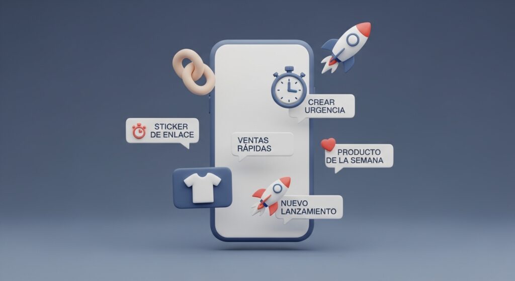 Las historias de Instagram son perfectas para ventas rápidas. Usa el sticker de «Enlace» para dirigir tráfico a tu catálogo: