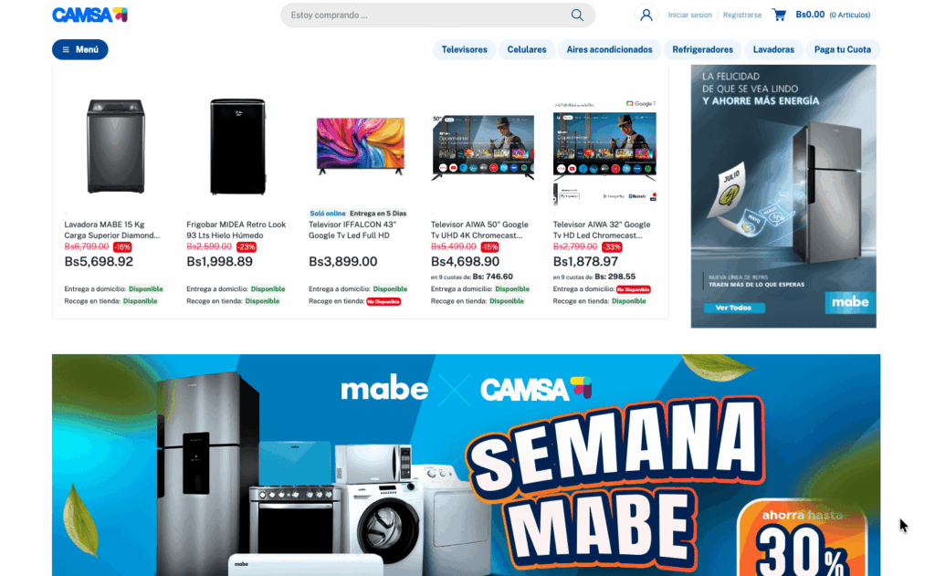 Camsa compite directamente en el sector de electrodomésticos a crédito en Bolivia. Similar a otros grandes retailers, su tienda online ofrece un amplio catálogo de tecnología y línea blanca, con la principal ventaja de su propio sistema de financiamiento.
