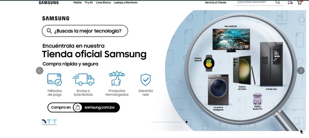Como la tienda online oficial de Samsung en Bolivia, esta plataforma es el canal de venta directo (D2C) de la marca en el país. Es la opción más confiable para comprar celulares, televisores y otros productos electrónicos de la marca, asegurando garantía de fabricante. Su gran fortaleza es una logística bien estructurada que promete cobertura nacional.